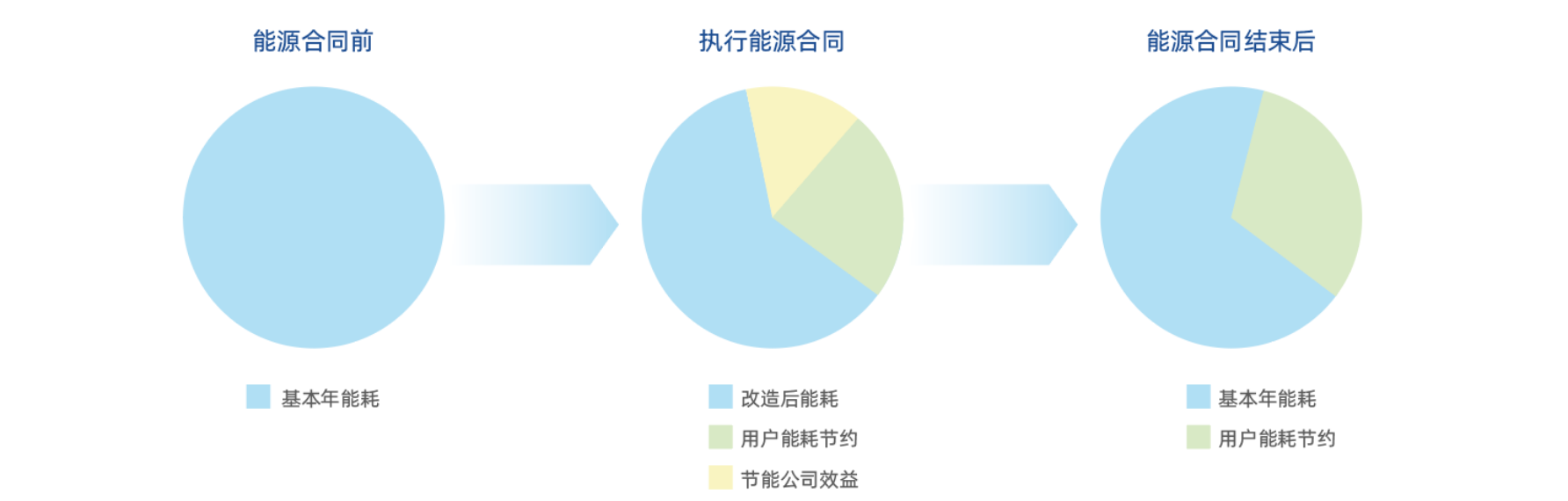 節能服務(wù)公司提供用能狀況診斷、節能項目設計、融資、改造(施工、設備安裝、調試)、運行管理等一站式服務(wù),并在合同期內全程參與節能改造項目。其中節能服務(wù)公司承擔項目的出資和實(shí)施,委托方則分享節能收益的一部分。