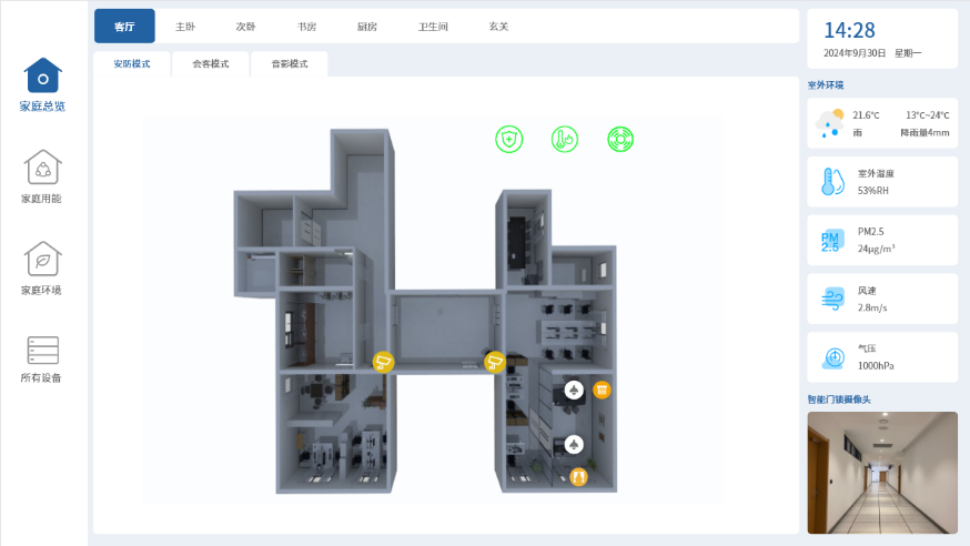 支持包括攝像頭(??低?、小米、360、喬安),可燃氣體傳感器、水浸傳感器、火焰傳感器、智能鎖、門(mén)禁等,用于監控和保護家庭安全;